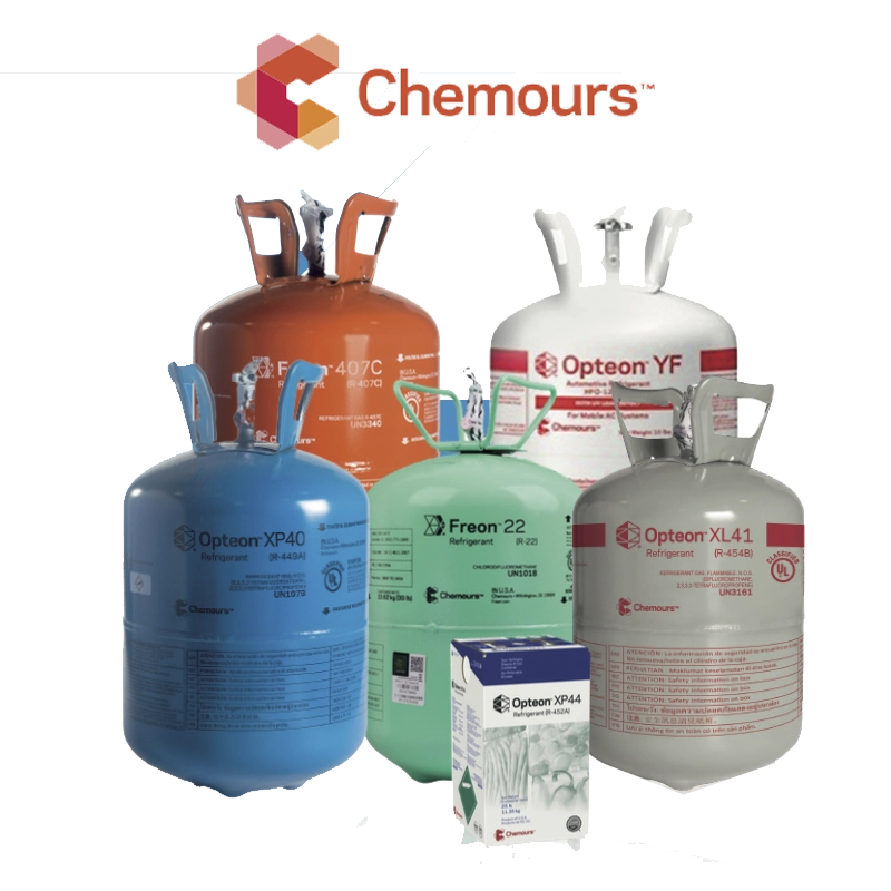 En MAOR somos distribuidores autorizados de Chemours, la marca líder a nivel mundial en gases refrigerantes de alto desempeño. Su tecnología está diseñada para asegurar una transferencia térmica superior, mayor eficiencia energética y una operación más confiable y sostenible en sistemas de refrigeración industrial, comercial y residencial. Ofrecemos una amplia disponibilidad de refrigerantes HFC, HFO y mezclas de nueva generación, compatibles con las normativas ambientales actuales y adecuados para reemplazo en equipos existentes.